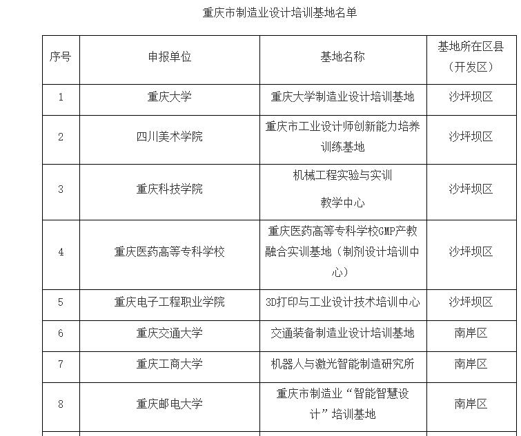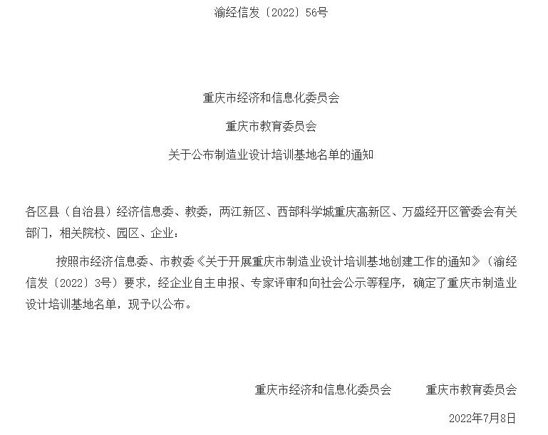近日,重庆市经济和信息化委员会公布了重庆市制造业设计培训基地入选名单,bat365官网获批重庆市制造业设计培训基地。