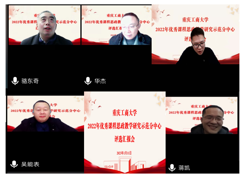 1月11日下午,bat365官网2022年优秀课程思政教学研究示范分中心评选汇报会顺利举行。本次评选汇报会线上举行。重庆市课程思政教指委副主任委员、西南大学教务处处长吴能表,重庆市高教学会秘书长余志祥,重庆市课程思政教指委委员蒋凯,学校党委常委、宣传部部长华杰,教务处处长骆东奇、副处长黄潇,以及15个课程思政教学研究示范分中心负责同志参加会议。会议由教务处副处长黄潇主持。