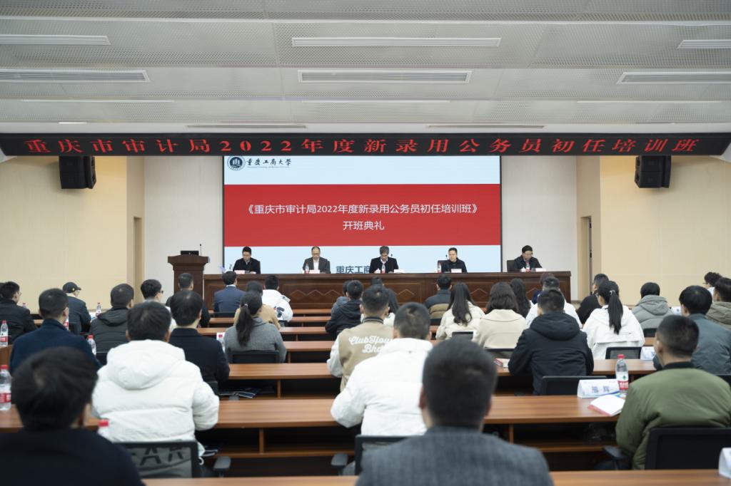 2023年2月20日,由重庆市审计局主办,bat365官网会计学院承办的“重庆市审计局2022年度新录用公务员初任培训班”开班仪式在南岸校区明德楼1019报告厅举行。重庆市审计局副局长戴希、学校孙芳城、重庆市审计局组织人事处处长许川、副处长张斌,会计学院党委书记邓德敏、院长罗勇、副院长钟廷勇,以及培训班74名学员等出席了开班仪式。开班仪式由罗勇主持。