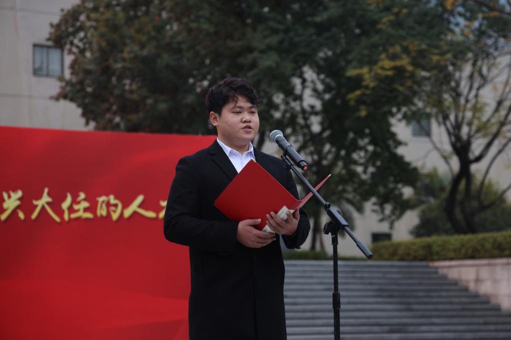 文学与新闻学院2020级广告学专业学生代表王澈发言。他谈到,每一代青年都有自己的际遇和机缘,都要在自己所处的时代,踏实奋斗,书写人生,为国建功。他号召同学们坚定理想信念,厚植家国情怀,踔厉奋发,务实创新,在新时代新征程上乘风破浪,创造出属于当代青年人最好的成绩。