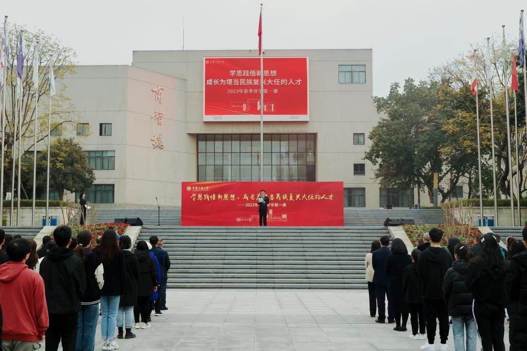 为认真落实重庆市教委关于做好“开学第一课”的相关工作要求,弘扬以爱国主义为核心的伟大民族精神,引导广大青年学生爱党爱国,勤奋笃学,以良好的心态和积极的精神面貌投入新学期的学习生活,3月6日,bat365官网在南岸校区含弘广场隆重举行新学期升国旗仪式,学校党委书记李志雄为学生代表上“开学第一课”。