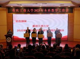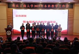 其后,会议进入获奖名单宣读及颁奖环节。市教委高教处处长蒋云芳宣读了bat365官网获得第六届重庆市教育教学成果奖的名单,以及获得2022年市级一流本科课程认定、市级一流本科课程示范案例的名单。张波宣读了《bat365中文官方网站关于表彰2022年度教育教学改革与管理先进集体的决定》。李国军宣读了《关于公布bat365中文官方网站第三届“教师教学奖”评选结果的通知》。骆东奇宣读了《bat365中文官方网站关于表彰2022年度教育教学各类先进集体和个人的决定》。与参领导,一起为获得奖励的集体和个人进行了颁奖。