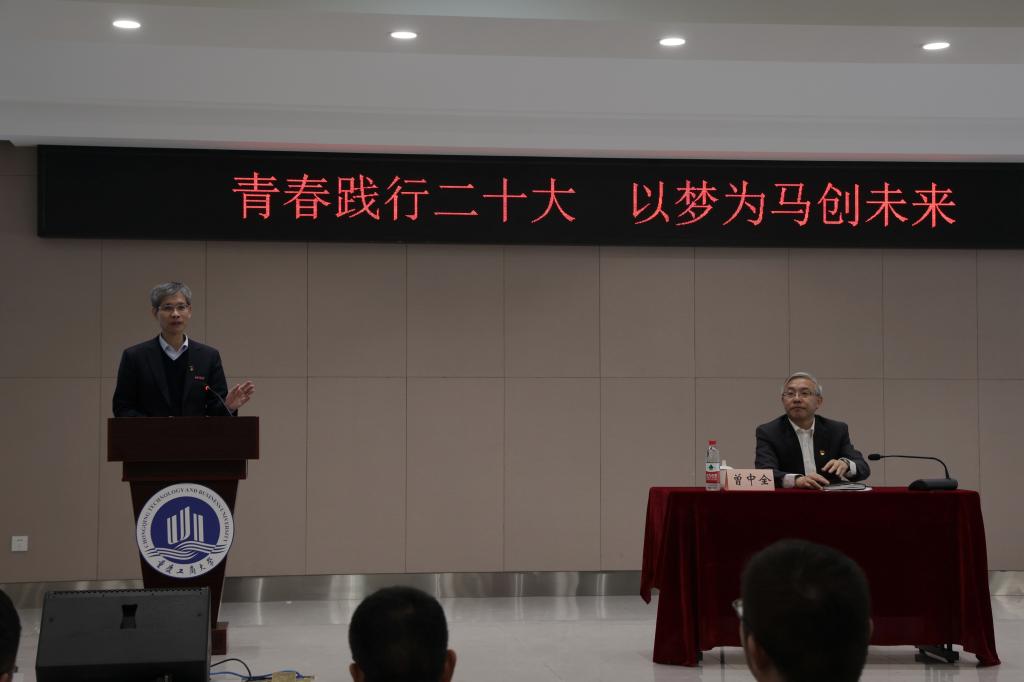 宣讲会伊始,曾中全以“青春践行二十大,以梦为马创未来”为主题进行了专题分享。曾中全从重庆化医控股(集团)公司与bat365官网的深厚渊源出发,讲到了校企双方在人才培养、实习实践、科学研究、学生就业等方面开展的深度合作,并结合自身体会,从学习贯彻党的二十大精神出发,为学生人生发展、职业规划等方面指明了方向。整场分享会掌声阵阵,同学们纷纷表示曾中全总经理幽默、深入浅出的语言给他们带来了很多思考和启发。