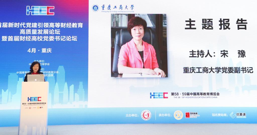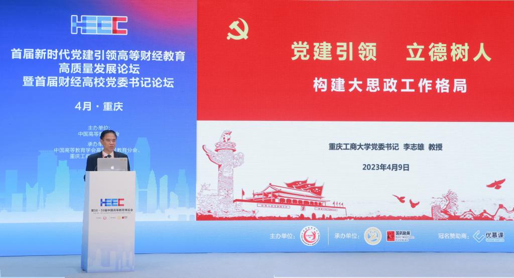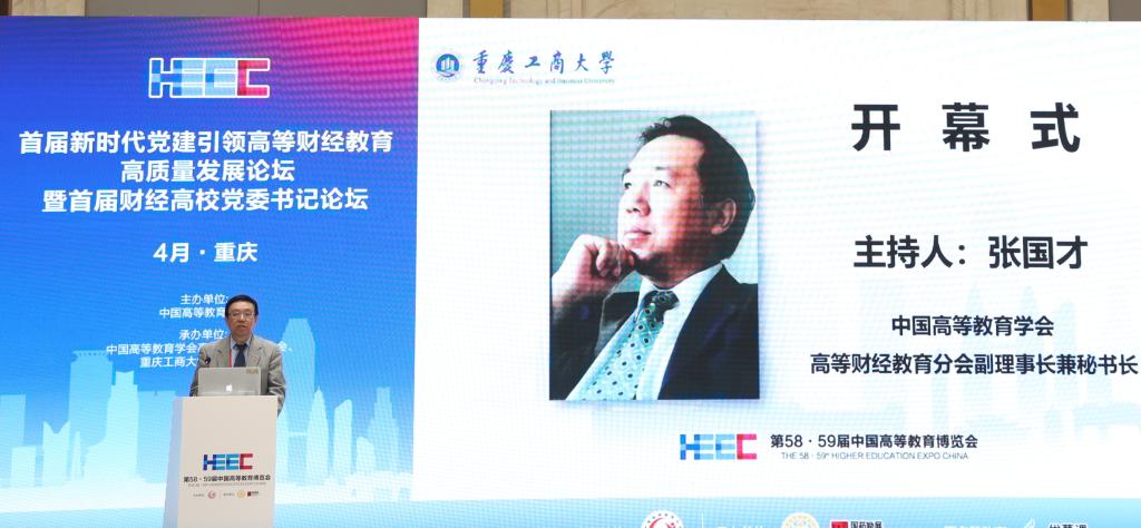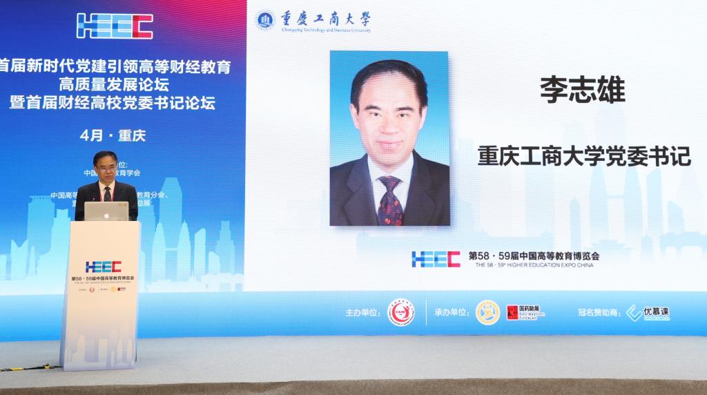 4月9日,作为第58·59届中国高等教育博览会的主论坛之一,由中国高等教育学会主办,中国高等教育学会高等财经教育分会、bat365官网承办的首届新时代党建引领高等财经教育高质量发展论坛暨首届财经高校党委书记论坛在重庆悦来国际会展中心喜悦厅顺利举行。中国高等教育学会副会长邬大光,中共重庆市委教育工委委员帅逊,对外经济贸易大学党委书记黄宝印,上海财经大学党委常委、常务副校长徐飞,北京工商大学党委书记黄先开,安徽财经大学党委书记虞宝桃,广东财经大学党委书记郑贤操,西安财经大学党委书记杨涛,吉林财经大学党委书记孙杰光,贵州财经大学党委书记刘雷,学校党委书记李志雄等来自70余所高校的30余位高校党委书记、校长和200余位领导、专家参加会议。大会以“新时代党建引领高等财经教育高质量发展”为主题,就财经类高校深入学习贯彻党的二十大精神,充分发挥高质量党建对高质量发展的引领和保障作用进行深入探讨和交流。论坛第一阶段由中国高等教育学会高等财经教育分会副理事长兼秘书长张国才主持,第二阶段由学校党委副书记宋豫主持。学校党委常委、纪委书记、监察专员周航,党委常委、副校长张波参加论坛。