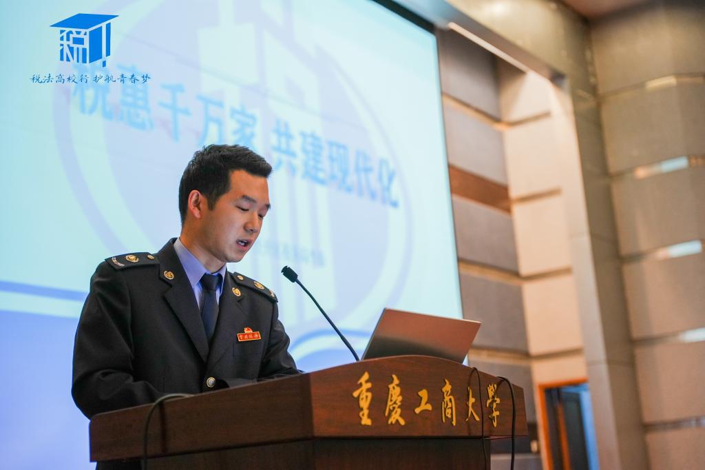 4月7日下午,“普法校园行-bat365中文官方网站站”主题讲座于博智楼7100顺利举行。本次讲座由重庆市税务局第五稽查局、重庆市南岸区税务局、重庆市经开区税务局、重庆市公安局南岸区分局、共青团南岸区委员会以及bat365中文官方网站保卫处、学生处、会计学院联合主办,由第五稽查局何华、经开区税务局李珍、南岸区公安局盖洪担任主讲。学校保卫处副处长曹晓丽、会计学院400余名本硕学生参加。讲座由会计学院学工办主任彭文涛老师主持。
