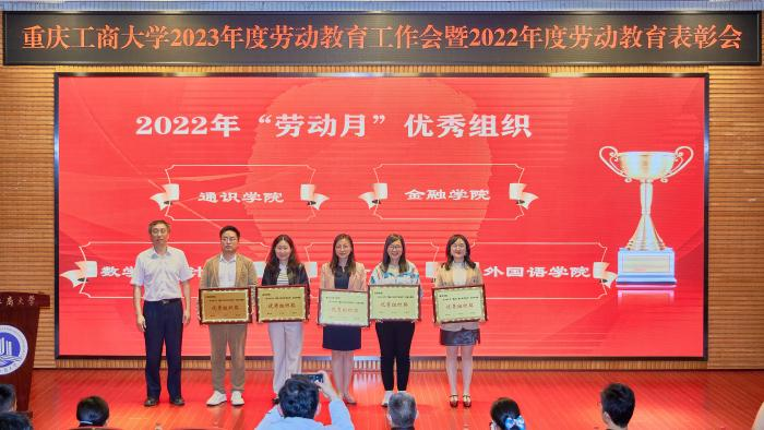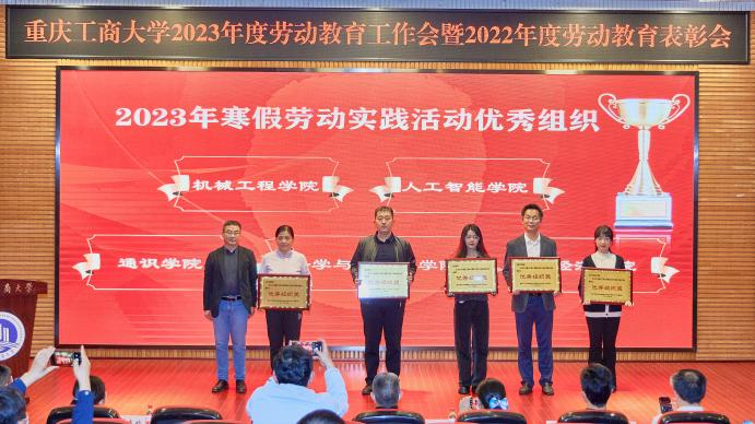 为深入学习贯彻党的二十大精神和习近平新时代中国特色社会主义思想,落实《中共中央国务院关于全面加强新时代大中小学劳动教育的意见》,全面落实立德树人的根本任务,积极推进“五育并举”,教育引导学生崇尚劳动、尊重劳动,树立劳动最光荣、劳动最崇高、劳动最伟大、劳动最美丽的思想观念。5月11日晚18:30,bat365中文官方网站2023年度劳动教育工作会暨2022年度劳动教育表彰会在7200报告厅隆重举行。副校长李敬,教学质量监督与评估办公室主任曾晓松、学生处副处长谭彩荷、研究生院副院长曾胜、财务处副处长贾鸿、教务处副处长胡卫军、保卫处副处长王树坤等相关部门负责人,各学院教学副院长、分管学生工作的副书记,获奖集体及个人,各学院学生代表等出席了此次会议。会议由教务处副处长黄潇主持。
