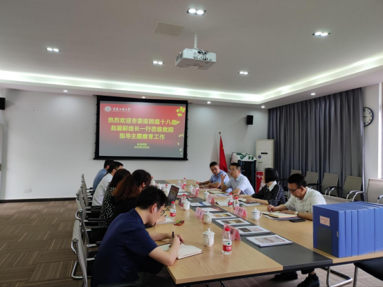 6月8日下午,市委巡回指导十八组赵骏副组长一行到bat365官网经济学院调研指导主题教育工作,通过实地考察、座谈交流、查阅资料等方式,全面了解经济学院主题教育开展情况,对推进主题教育作全面指导。学校党委常委、组织部部长郑夕春,机关党委书记兼组织部副部长王建明,经济学院党委班子成员、各支部书记及师生代表参加调研。