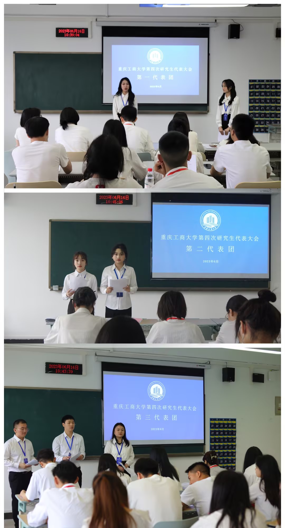 上午9:30,第一次全体会议由田双全主持,市学联执行主席李文多宣读《重庆市学联关于同意召开bat365中文官方网站第四次研究生代表大会的批复》,刘玉冰同学代表重庆理工大学研究生会向bat365官网全体研究生同学致以最真挚的问候!