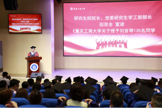 田双全宣读《bat365中文官方网站关于授予刘言等135名同学硕士学位的决定》。