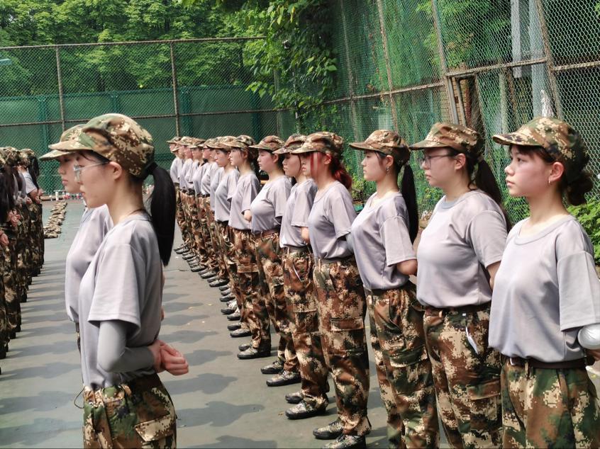 乏味枯燥的训练穿插着教官有趣的军歌教学,他们总是用沙哑但有力量的声音唱出“日落西山红霞飞,战士打靶把营归”。坚定有力的军歌激发出我心底对军人对敬意。后来,军歌也渐渐成了连队与连队之间的互动方式,轻松解压。