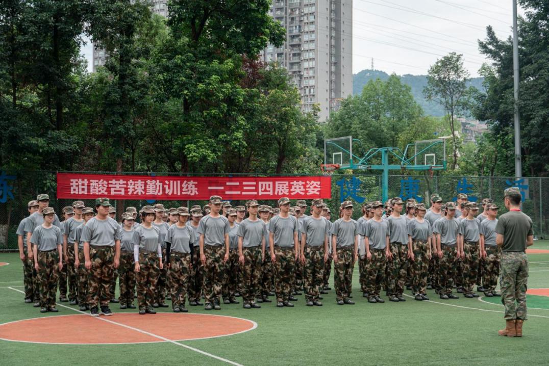 突降的大雨并未浇灭同学们的热情,从开营仪式到基础的军姿训练,我们都以最好的状态对待。汗水从脸颊划过,滴落到绿色草坪上,一支又一支方队整齐地在操场上前行,教官们铿锵有力的口号声响彻云霄。在雨后阳光里、绿油油的爬山虎下、绿草如茵的操场上,迷彩服展示着青春最美好的风采。
