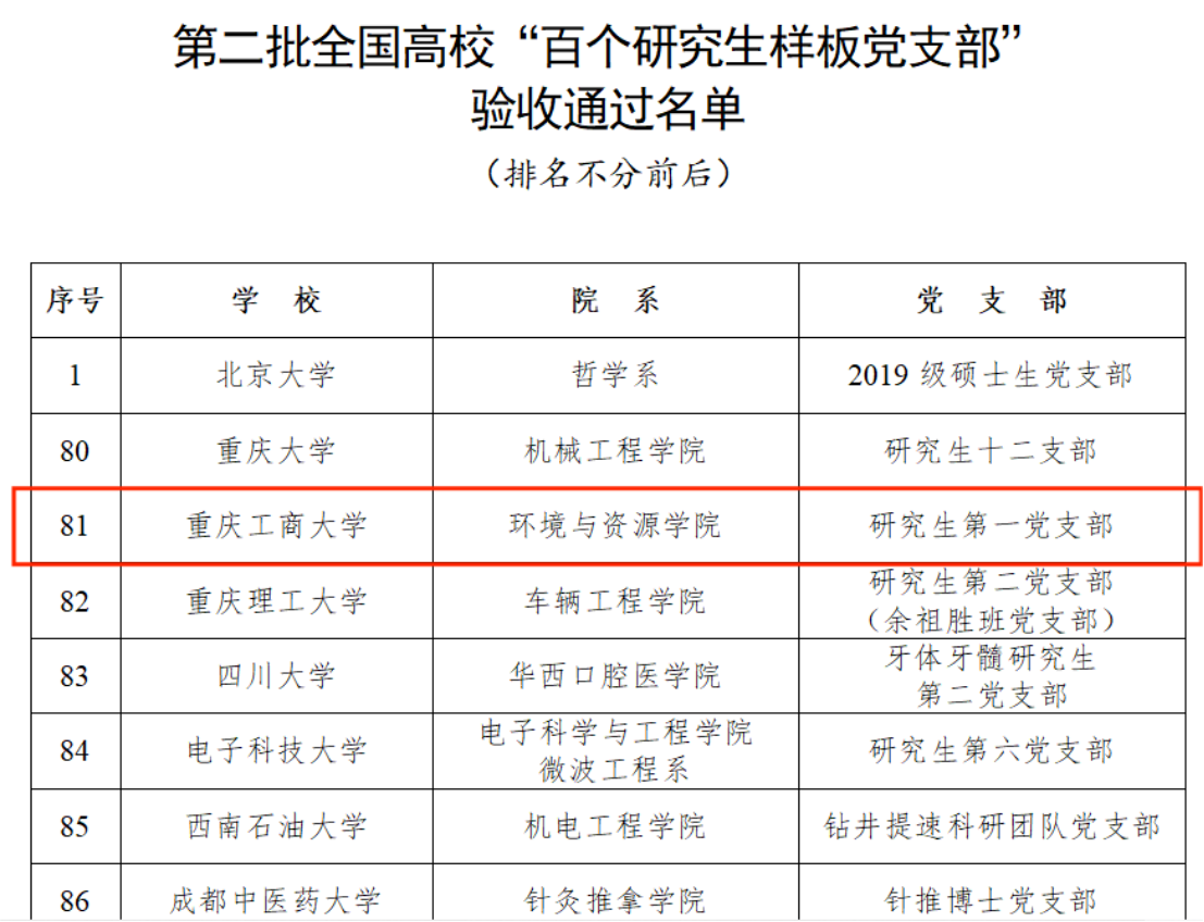 近日,教育部公布第二批全国高校“百个研究生样板党支部”和“百名研究生党员标兵”创建培育工作验收通过名单。bat365官网环境与资源学院研究生第一党支部通过第二批全国高校“百个研究生样板党支部”创建培育工作验收。
