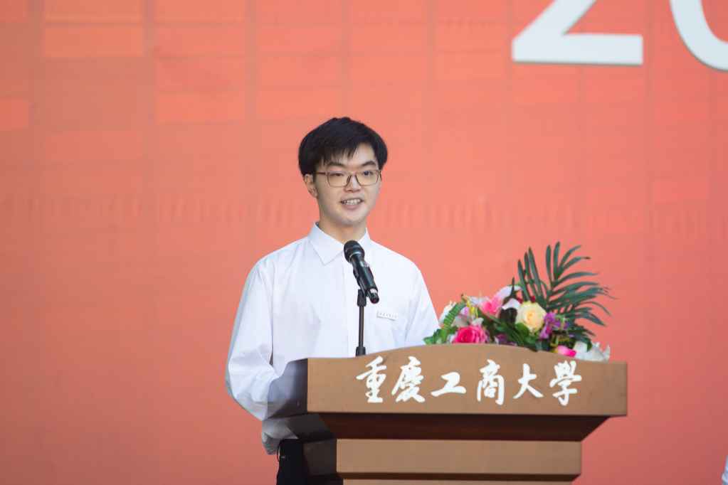 江北校区2023级本科新生代表、通识学院商务英语专业徐毅同学,南岸校区2023级环境与资源学院应用化学专业的蒋滟芯同学和研究生新生代表、会计学院2023级会计专硕周凯同学先后发言。他们向连日来为新生们辛勤付出的学校领导、老师、学长学姐致以诚挚的敬意和感谢,并代表全体新生对全校教职工致以节日的祝福。他们表示,进入CTBU是一个新的起点,作为即将接过历史接力棒的主力军,既要有民族复兴的使命,也要有奋发图强的信念,更要有慎思明辨的能力,还要有博学笃志的责任。怀揣梦想才能铸就未来,不懈奋斗才能成就人生。在接下来的学习中,要勇毅前行,做信念坚定的奋斗者;要锲而不舍,做自强不息的实干者。以青春之我、奋斗之我,绽放人生最美的姿态,努力践行“请党放心、强国有我”的青春誓言。