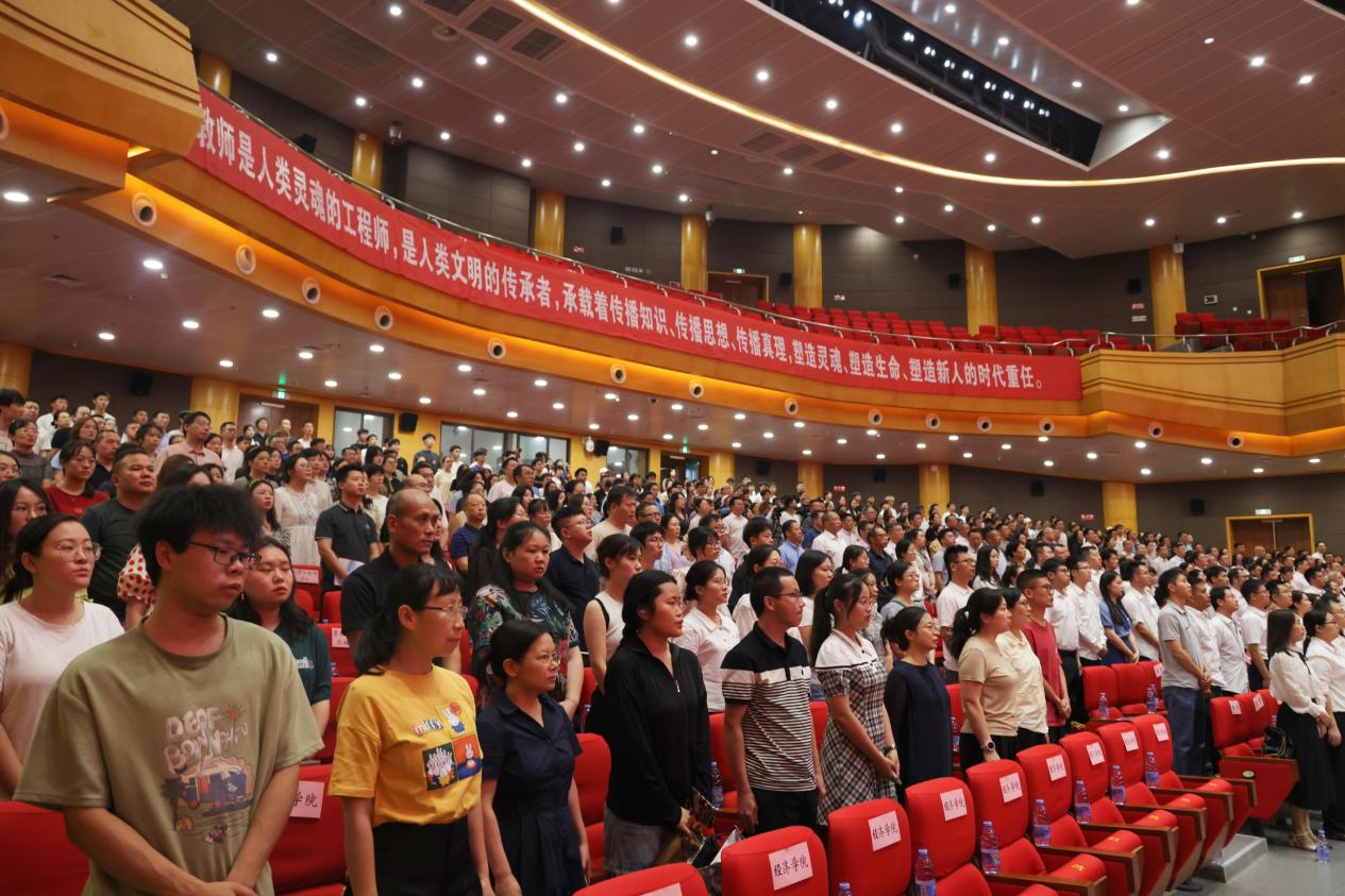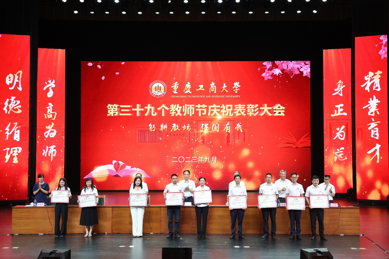 为深入学习贯彻习近平新时代中国特色社会主义思想和党的二十大精神,热烈庆祝第三十九个教师节,表彰和鼓励为全校教育事业做出重要贡献的教职员工,9月8日下午,bat365官网在图书馆剧场举行教师节庆祝表彰大会。全体在家校领导,受表彰人员代表,中层干部代表,教职工代表,离退休人员代表和学生代表参加大会。会议由党委常委、副校长李敬主持。