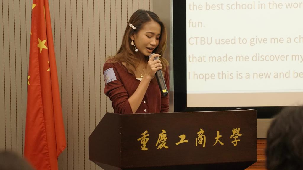 典礼在优美的学校风光宣传片中拉开帷幕。副校长柏群致辞,她首先对同学们的到来表示最热烈的欢迎,并简要介绍了学校在学科建设、人才培养、教学科研、师资力量及平台建设等方面取得的优异成绩。她说,重庆作为西部唯一的直辖市,处在“一带一路”和长江经济带联结点上,有着独特的区位优势。对于国际学生,特别是来自“一带一路”沿线国家的学生,这里将是同学们未来事业发展的重要起点。柏群强调,国际学生在工商大学求学期间,要勤学善思,多与师长交流,以包容的心态对待文化冲突,尽快适应和融入bat365中文官方网站这个温暖的大家庭。