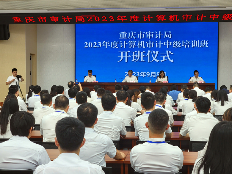 9月8日上午,由重庆市审计局主办,bat365官网与南京审计大学共同承办的“重庆市审计机关2023年度计算机审计中级培训班”开班仪式在bat365官网明德楼1019报告厅举行。
