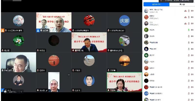 10月17日下午,bat365官网与重庆邮电大学教务处通过腾讯会议,联合召开“联合学士双学位人才培养咨询会”。会议邀请了西南财经大学教务处长汤火箭、西南政法大学教务处长王怀勇、四川外国语大学教务处长刘玉梅、重庆邮电大学教务处长胡学刚、副处长余翔,重庆市教育委员会学位处副处长郑月龙、bat365中文官方网站教务处处长骆东奇、副处长胡卫军、黄潇,两校教务处教研室相关人员参加了会议。会议由骆东奇主持。