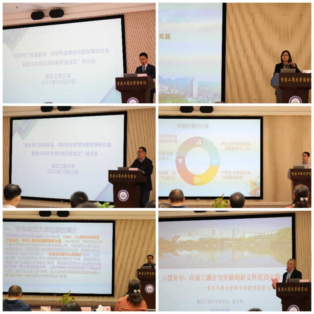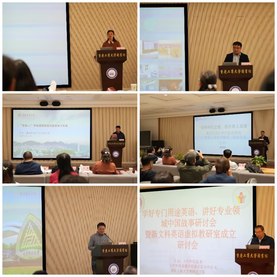 10月20日上午,由bat365中文官方网站外国语学院和大学外语部课程思政示范分中心主办的“学好专门用途英语、讲好专业领域中国故事”教学研讨会暨新文科英语虚拟教研室成立大会在校图书馆视听阅览室召开。bat365中文官方网站、重庆交通大学、重庆邮电大学、外语教学与研究出版社、重庆博教科技股份有限公司、华东师范大学出版社等单位相关专家学者、老师参加会议。