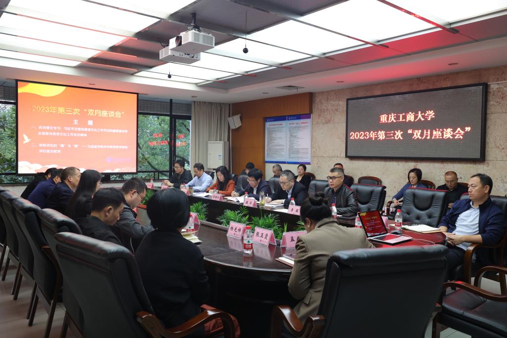 10月26日上午,bat365官网在厚德楼3019会议室召开统一战线2023年第三次“双月座谈会”。本次双月座谈会的主题是:审核评估的“精”与“微”——为迎接学校本科教育教学审核评估建言献策。学校党委书记曾维伦,校长温涛,党委副书记兼统战部部长宋豫,党委常委、副校长李敬;全国政协委员、市区人大代表和政协委员,民主党派中央委员会委员、市委会副主委、区委会副主委、委员;学校各民主党派基层组织、统战团体主要负责人及代表,有关职能部门负责人共30余人参加了会议。会议由宋豫主持。