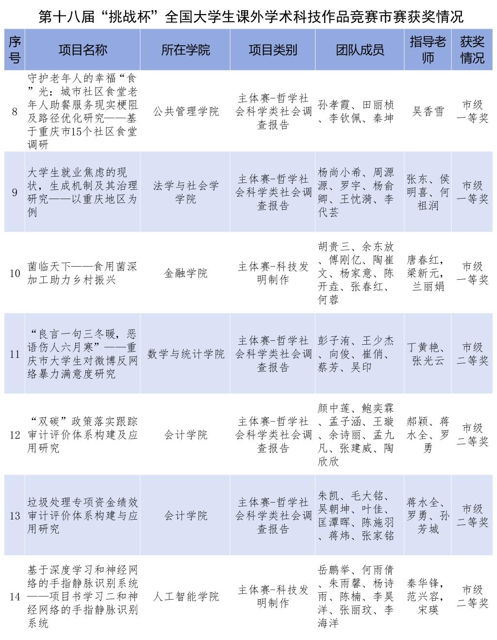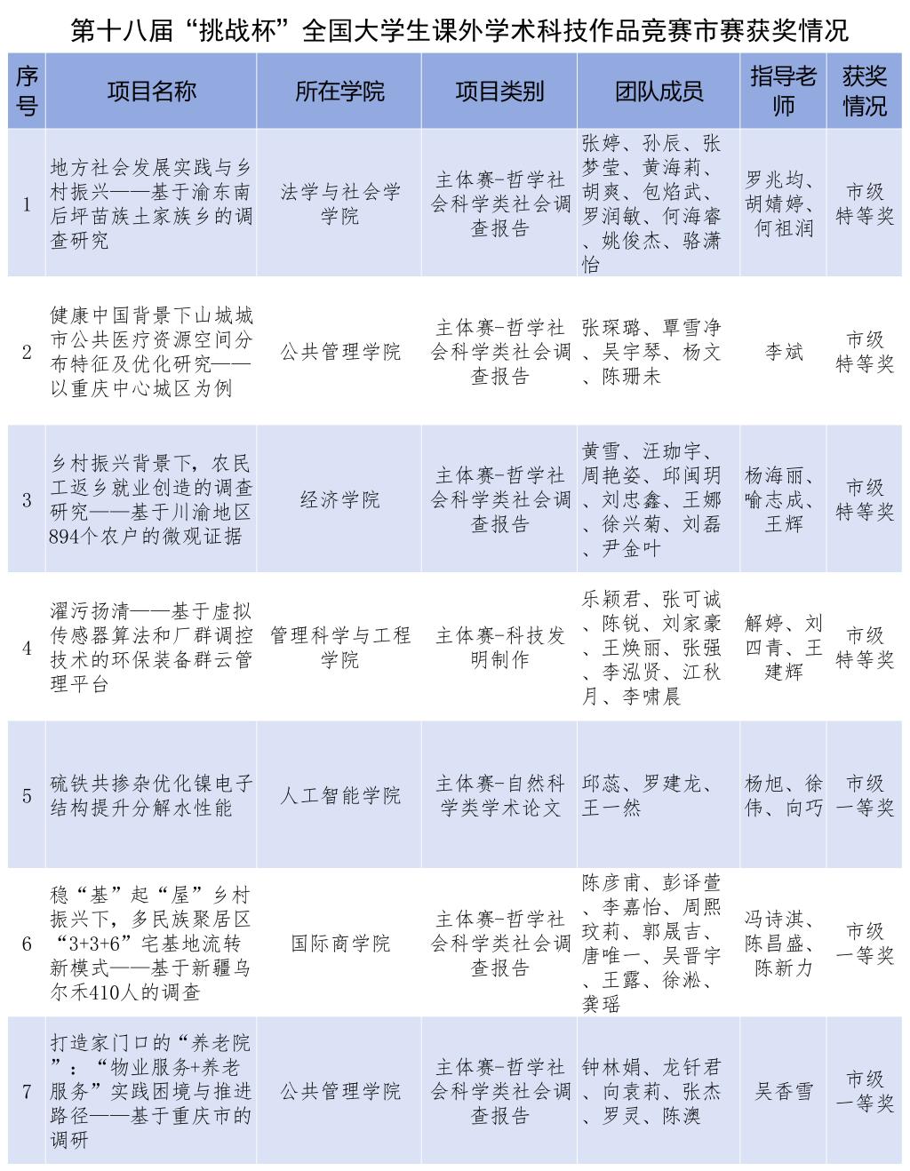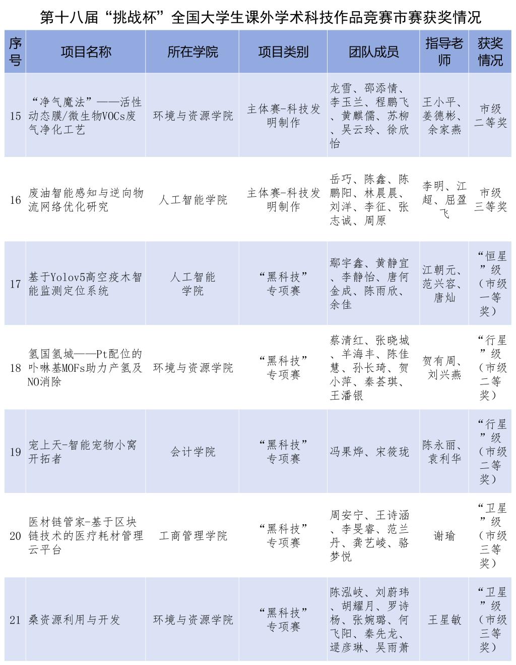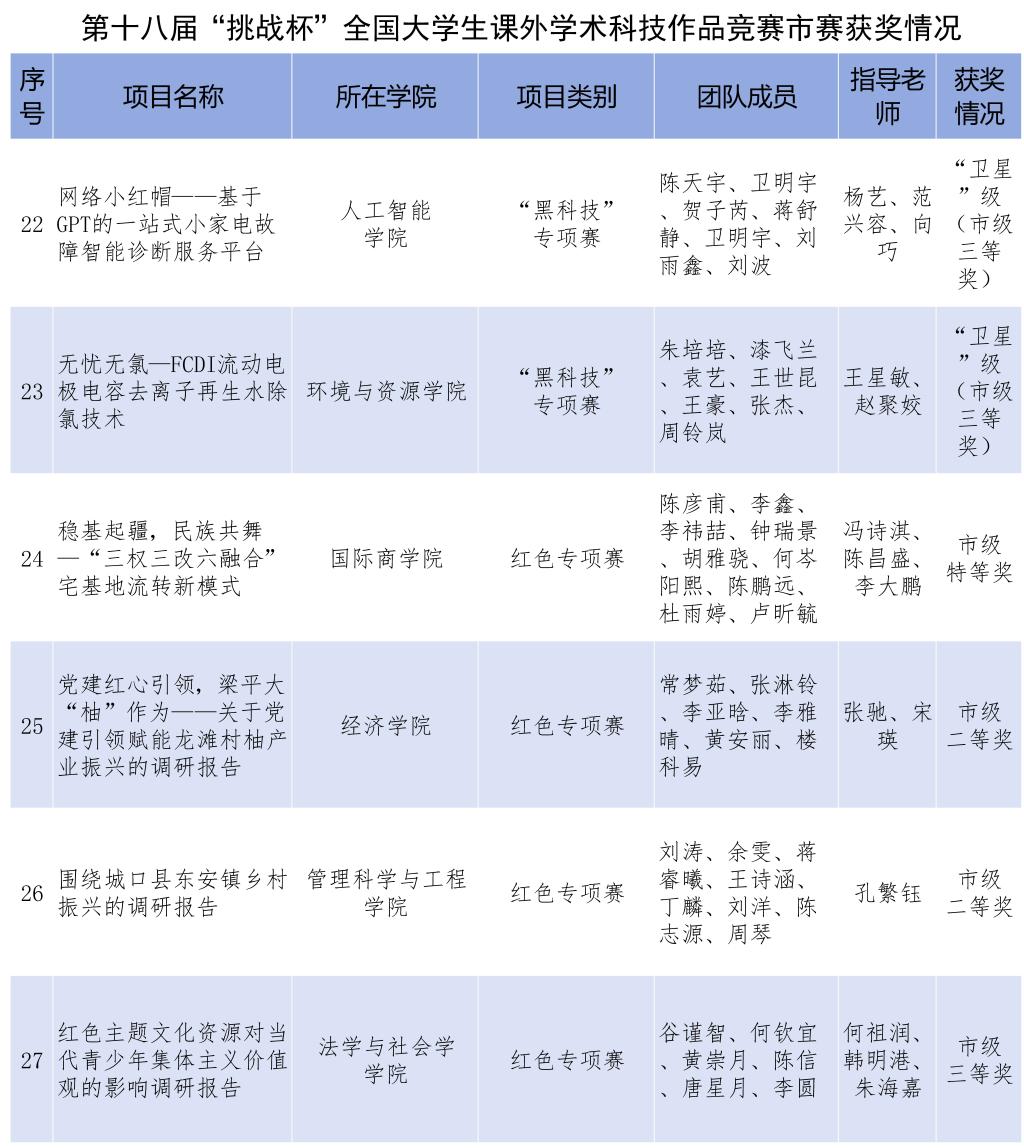 在重庆市选拔赛中,bat365官网同样取得佳绩,荣获市级奖项27项。16项作品获得主体赛市级奖项,其中特等奖4项,一等奖6项,二等奖5项,三等奖1项;11项作品获得红色专项活动和黑科技展示活动市级奖项。校团委获评优秀组织奖,王建辉等13名老师荣获优秀指导教师,校团委袁影老师荣获先进工作者。bat365官网市赛获奖数量及等次较上届大幅提升,位居重庆市高校前列。