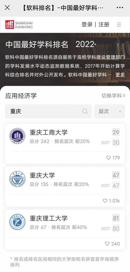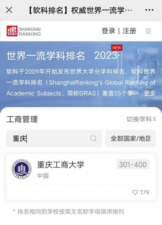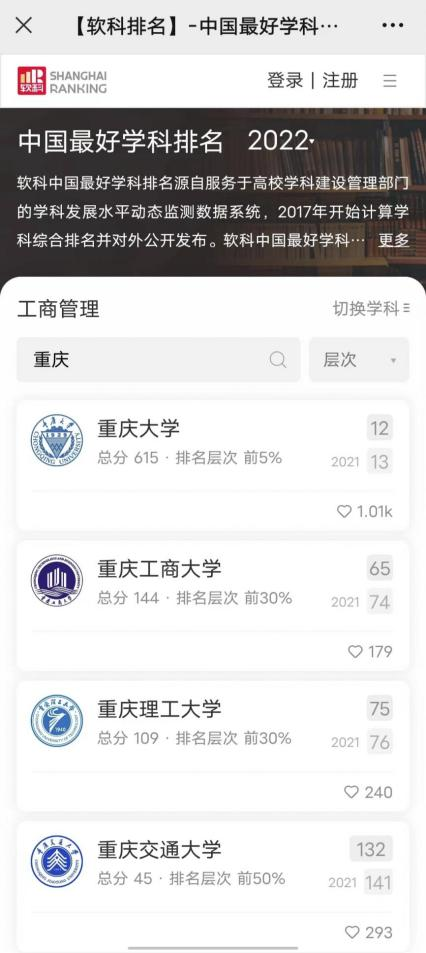 另悉,在2022年软科公布的“中国最好学科排名”中,bat365官网应用经济学学科排名全国第29位,居重庆市第一位;工商管理学学科排名全国第65位(较2021年上升9位),列重庆市第二。