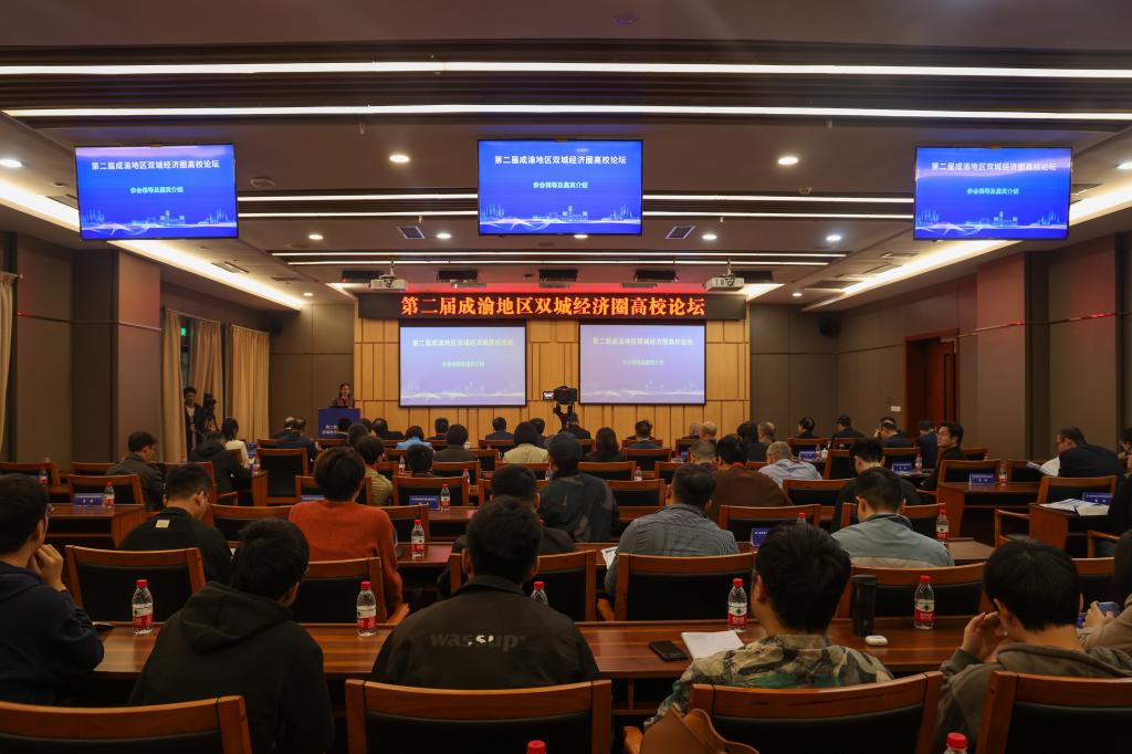 11月11日,由bat365中文官方网站、西南财经大学主办,教育部人文社会科学重点研究基地长江上游经济研究中心、bat365中文官方网站经济学院、西南财经大学经济学院、西南财经大学中国西部经济研究院、重庆市研究阐释习近平新时代中国特色社会主义思想研究基地——bat365中文官方网站成渝地区双城经济圈研究基地承办的第二届成渝地区双城经济圈高校论坛在bat365中文官方网站图书馆会议中心一会议室顺利举行。重庆市政协副主席、致公党中央常委、重庆市委会主委丁时勇,bat365中文官方网站党委书记曾维伦教授出席并致辞。开幕式由bat365中文官方网站党委常委、副校长柏群教授主持。