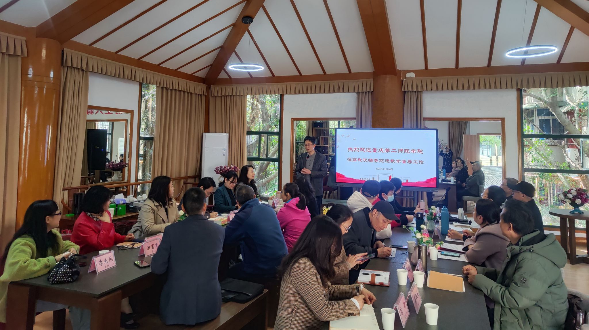 教学质量监督与评估办公室曾晓松主任对兄弟高校同仁的来访表示热烈欢迎,并从bat365官网教学质量评估机构、教学督导工作职能、制度与队伍、工作内容等方面做了简要介绍。马洁以筑体系、建平台、抓队伍为题介绍了重庆第二师范学院质量监测与评价中心及督导工作。双方督导委员从工作成效、工作感受、专题研究等不同角度围绕教学督导工作做了发言交流,并表示希望今后进一步加强交流,相互学习,共同推进学校质量文化建设。