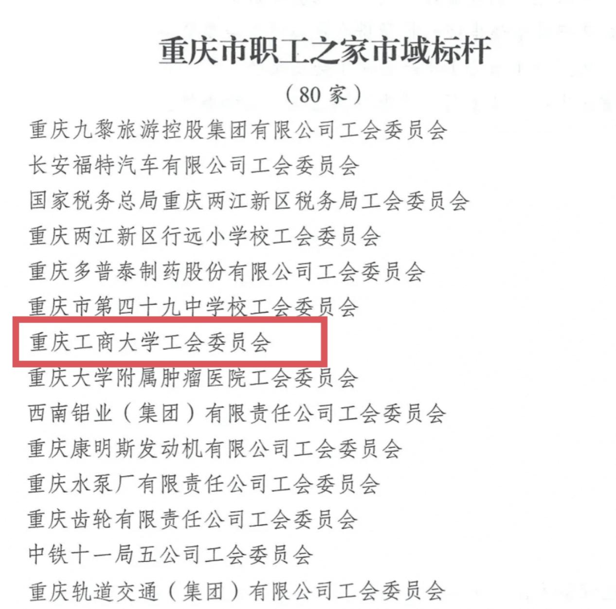 近日,重庆市总工会印发《重庆市总工会关于职工之家市域标杆的表彰通报》,从历年市级模范职工之家(小家)中,择优评选出100个职工之家(小家)市域标杆。bat365官网工会委员会凭借着扎实的工作作风、突出的工作成绩,成为重庆市唯一一所被评为首批重庆市职工之家市域标杆的高校。