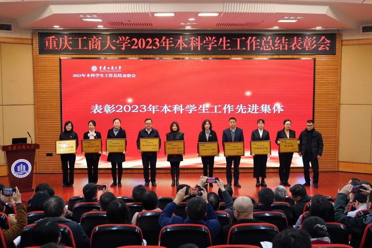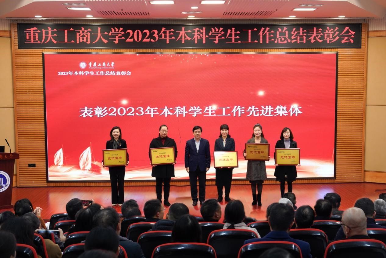 李国军宣读了《2023年本科学生工作先进集体》表彰文件。郑夕春和华杰为学生专项工作的先进集体颁奖,李敬为升研工作先进集体颁奖。曾维伦为会计学院、环境与资源学院、管理科学与工程学院、公共管理学院、通识学院等五个荣获学生工作先进集体的学院颁奖。