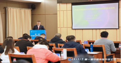 学校党委常委、副校长李敬作了题为《内陆开放的复兴与中国内陆开放高地建设战略》的主旨报告。他认为经济交易成本的优势是内陆开放复兴的基础,强调中欧班列、西部陆海新通道对内陆开放的重要意义,提出中国内陆开放高地建设战略的实现路径。