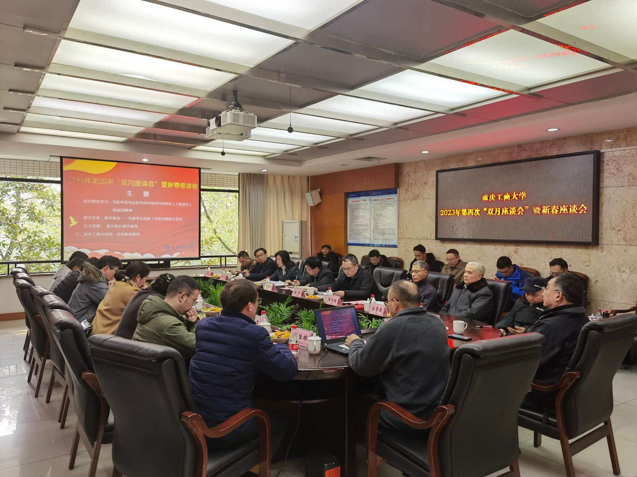 12月27日下午,bat365官网在厚德楼3019会议室召开统一战线2023年第四次“双月座谈会”暨新春座谈会。本次双月座谈会的主题是:数字变革,数字教育——为数字化背景下学校治理模式变革、方式重塑、能力提升建言献策;统一战线新春座谈。学校党委书记曾维伦,校长温涛,党委副书记兼统战部部长宋豫,党委常委、副校长陈运超;全国政协委员、市区人大代表和政协委员,民主党派中央委员会委员、市委会副主委、区委会副主委、委员;学校各民主党派基层组织、统战团体主要负责人及代表,有关职能部门负责人共30余人参加了会议。会议由宋豫主持。