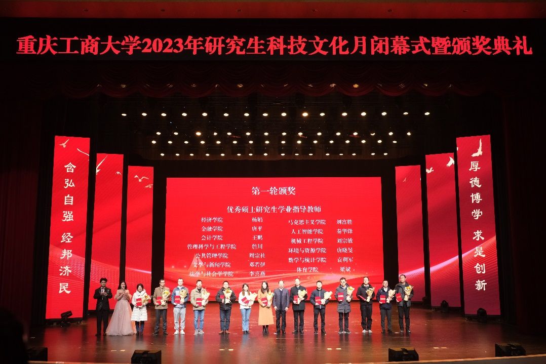 2023年12月29日,“活力工商,筑梦研途”研究生科技文化月闭幕式暨颁奖典礼在图书馆剧场举行。学校党委常委、副校长张波和李国军,各职能部门负责人、各研究生培养单位负责人和老师们、各培养单位的研究生和研分会的代表出席了活动。