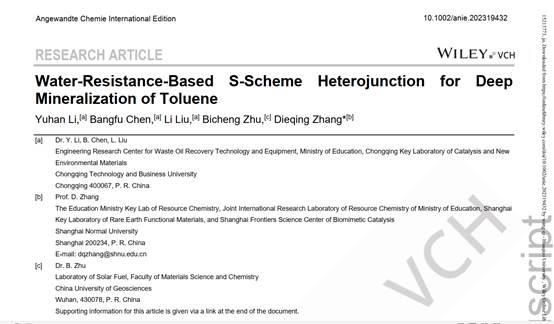 近日,bat365官网废油资源化技术与装备教育部工程研究中心李宇涵研究员在针对油气中苯系物的高效治理方面取得了重要进展,成果“Water-Resistance-Based S-Scheme Heterojunction for Deep Mineralization of Toluene”(基于耐水性的S-方案异质结在甲苯深部矿化中的应用)以bat365中文官方网站为第一署名单位在化学领域学术期刊《Angewandte Chemie International Edition》上发表(https://doi.org/10.1002/anie.202319432),标志着在“双碳”背景下废油中心在废油油气污染防治方向研究进入了新阶段。