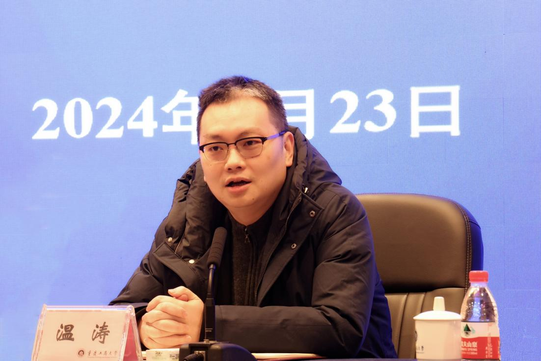 会上,校长温涛围绕寒假主要工作通报、2024年主要工作部署、开学相关工作等三个方面作讲话。温涛指出,寒假期间,校园平安、稳定、祥和,学校向寒假期间坚持辛勤工作,尤其是向全力冲刺申博、茶园新校区建设和寒假值班值守的教职工表示诚挚的感谢。2024年全校上下要团结一心、努力拼搏,奋力推动学校各项事业高质量发展。一是全力以赴冲刺博士学位授权单位,做好申博工作后半篇文章;二是大力推进茶园校区建设;三是扎实做好迎接本科教育教学审核评估工作;四是抓好人才培养改革创新,深化学科交叉融合,实现商工融合新的突破;五是以教育教学改革评价为抓手,做好人事人才制度改革和职称评审制度改革;六是做好机构改革,优化资源配置,补足短板;七是推进校院两级管理体制改革,激发多维动力活力。温涛还从认真做好学生返校及开学教育教学运行、新学期开学校园安全稳定等方面对新学期开学工作进行了强调。