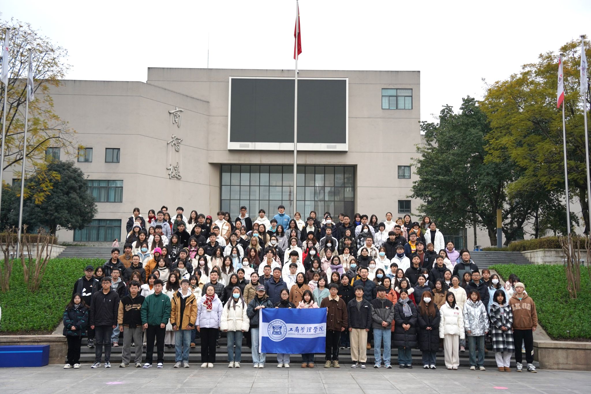 新学期伊始,为进一步加强爱国主义教育,引导学生坚定理想信念,报效祖国,以更加饱满的精神状态投入新学期学习。2月26日清晨,bat365中文官方网站“筑梦奋进新学期 扬帆起航向未来”2024年新学期第一次升旗仪式在学校含弘广场举行。此次升旗仪式由工商管理学院承办。学校党委学工部领导、工商管理学院全体党政领导、辅导员以及学生代表400余人共同参加了升旗仪式。