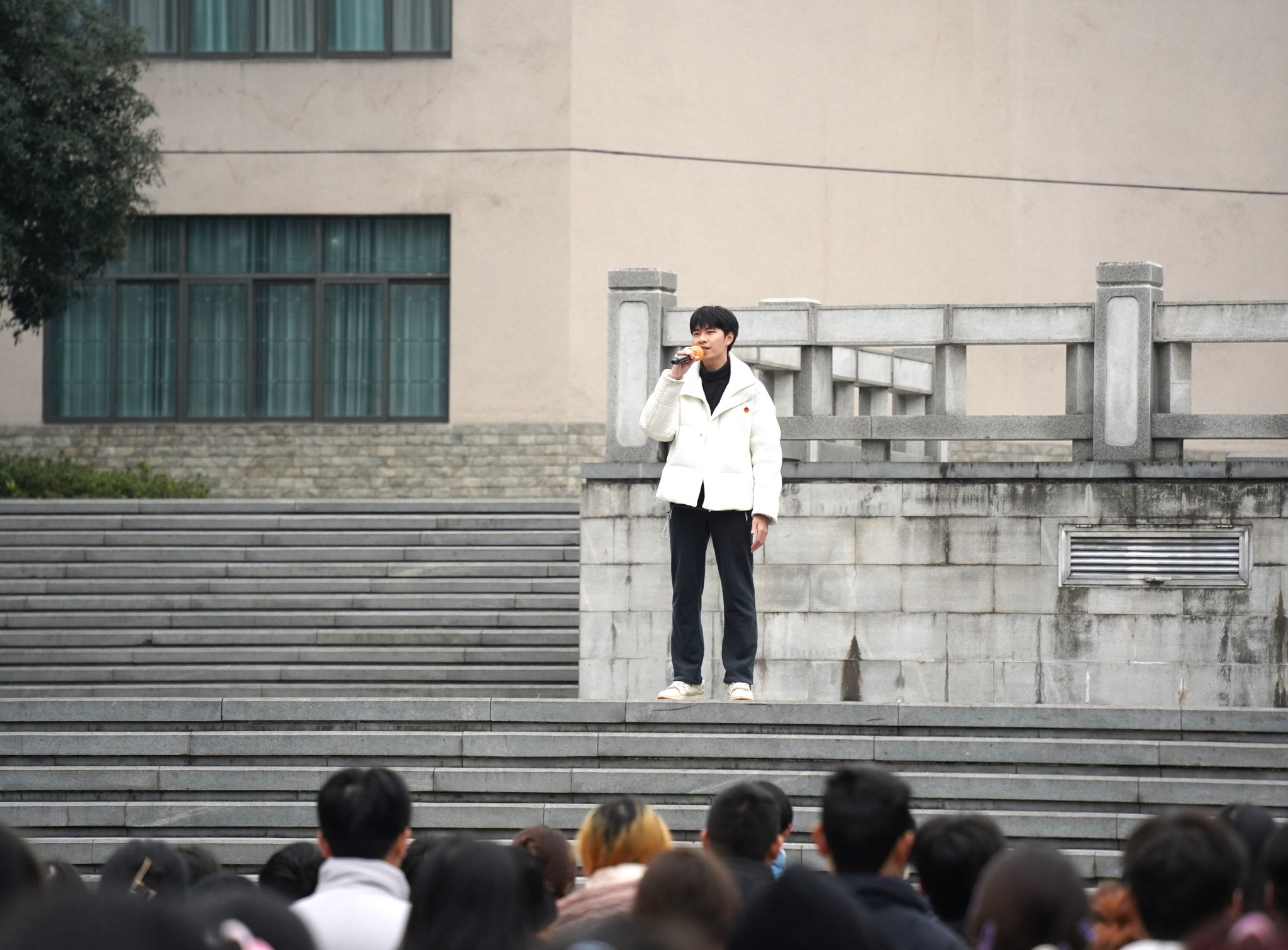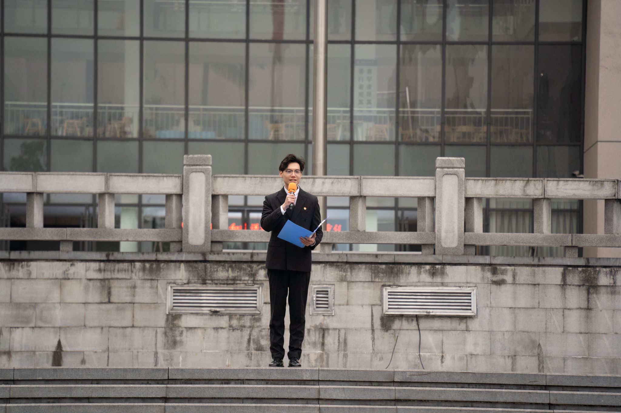 学生代表2021级工商管理专业唐何金成以“奋斗青春,强国有我”为主题作国旗下的演讲。他以“奋斗”为关键词,与大家共勉,在新的一年为了心中的梦想笃行不怠,为了中华民族的伟大复兴拼搏奋斗。2021级市场营销专业的杨清焱同学为大家带来歌曲《发光时代》。