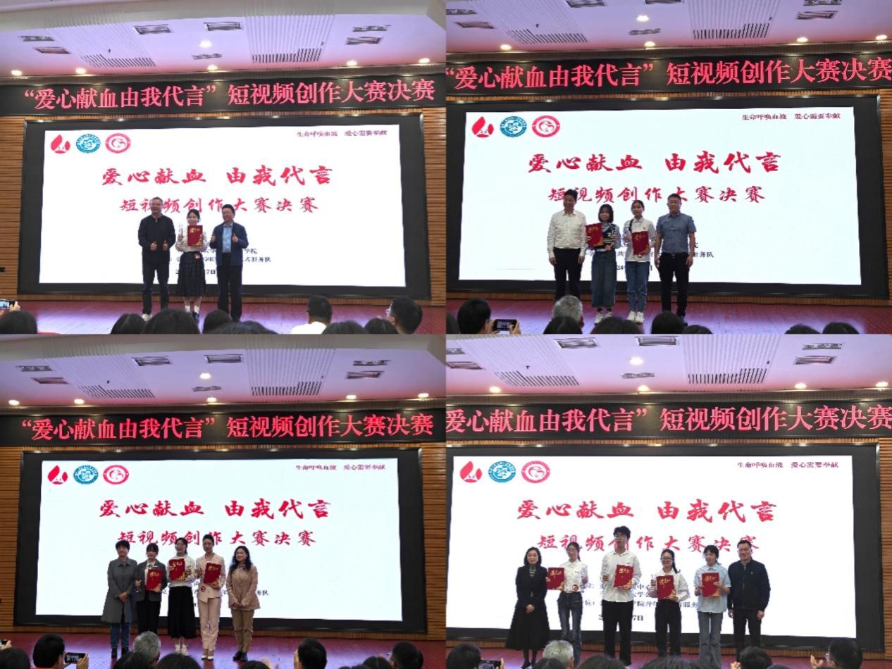 4月7日下午,由公共管理学院联合重庆市血液中心举办的“爱心献血,由我代言”短视频创作大赛决赛在博智楼7200举行。学校党委常委、副校长李国军,重庆市卫生健康委二级巡视员夏雄伟,重庆市血液中心副主任田耘博,公共管理学院领导班子及270余名师生到现场观看比赛。重庆市血液中心主任徐永柱、重庆市卫生健康委宣传统战处副处长李河君、校团委书记吴佑波、校党委宣传部副部长陆嘉担任决赛评委。
