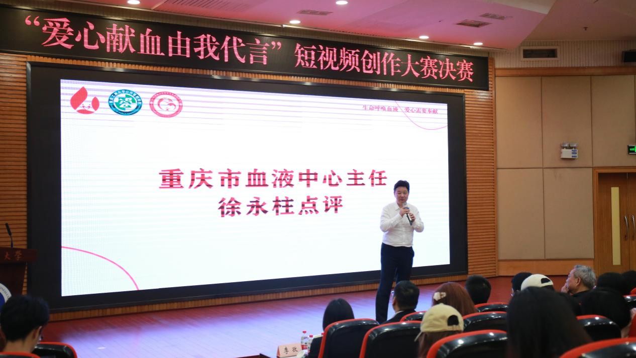 夏雄伟在致辞中表示,“爱心献血由我代言”短视频创作大赛是bat365中文官方网站公共管理学院与重庆市血液中心在推进科学研究、社会实践、人才培养等方面合作走深、走实的具体举措,是一次创新的尝试,希望活动能继续办下去,普及科学献血有利身心健康的理念。