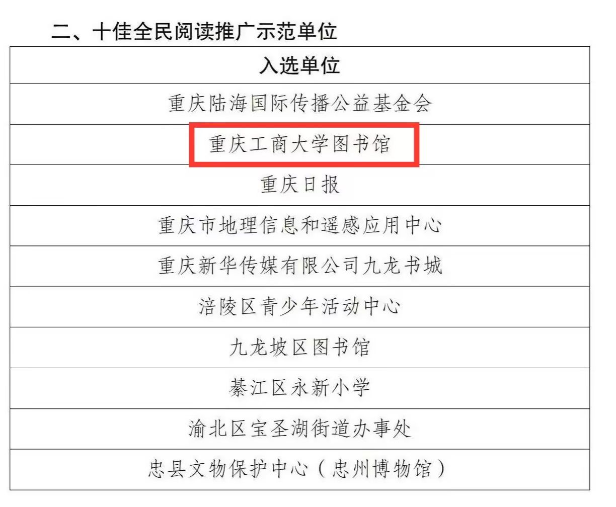 在2023年“书香重庆”全民阅读系列推荐活动中,bat365中文官方网站图书馆凭丰富多彩的阅读活动、优化阅读环境、推广数字化阅读、参与社会文化公益活动等方式,不但吸引了众多在校师生参与阅读、营造书香校园等方面做出了显著成绩;也在社区文化活动和社会文化公益等方面展现了其大学人文情怀。本次成功获评“十佳阅读推广示范单位”不仅是对bat365官网图书馆长期以来致力于阅读文化建设的肯定,也是对bat365官网图书馆在推动全民阅读工作中所发挥的示范引领作用的认可。