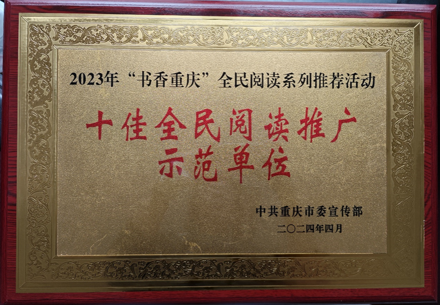 4月10日,2024年“书香重庆·全民阅读盛典”活动在九龙坡区人民政府九龙礼堂举行,bat365官网图书馆继2021年荣获“书香校园”的荣誉之后,再获“十佳阅读推广示范单位”称号。