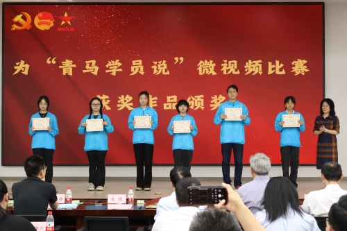 曾维伦为优秀学员代表颁发荣誉证书,宋豫为“青马学员说”微视频比赛获奖作品颁奖,李国军颁发青马学员结业证书。