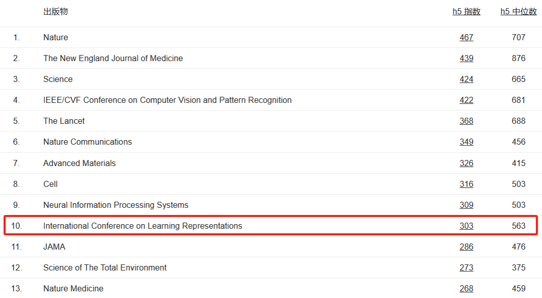 国际表征学习大会(International Conference on Learning Representations,简称ICLR)是人工智能领域机器学习的顶级学术会议。在2023年谷歌学术(Google Scholar)公布的学术期刊会议影响力排名中,位列所有学科期刊/会议中第10名。本届ICLR国际学术会议有近7262篇论文参与投稿,经评审专家匿名审稿,最终录用2251篇(31%),其中被评为亮点论文(Spotlight)的仅366篇(5%)。