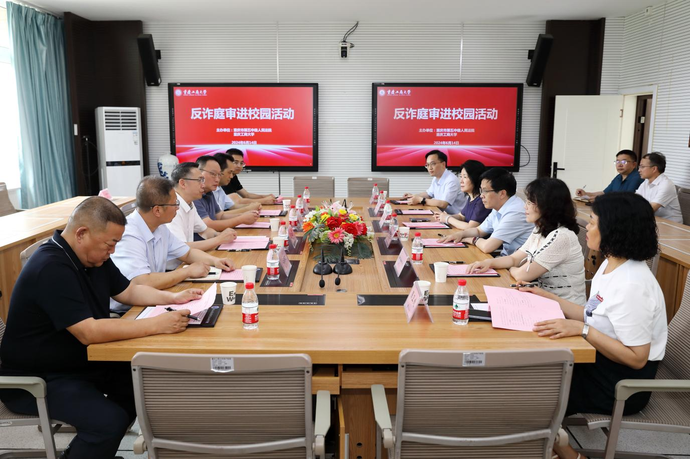 6月14日,法学与社会学学院联合重庆市第五中级人民法院举办大学生诈骗案件真实庭审进校园活动,学校党委书记曾维伦、党委副书记宋豫,重庆市第五中级人民法院院长胡红军、党组成员朱文林出席活动。全国人大代表傅红涛、殷其龙、黄大勇、刘平,全国政协委员卢跃富等5名全国、市级人大代表和政协委员现场听审,40余名代表委员线上听审,bat365官网保卫处负责人以及14个学院的近150名本、硕学生线上线下旁听庭审,庭审同时向西南大学、重庆医科大学、重庆交通大学等12所高校约4000余名师生直播,活动受到人民日报、中央电视台、新华社等10余家媒体关注报道。