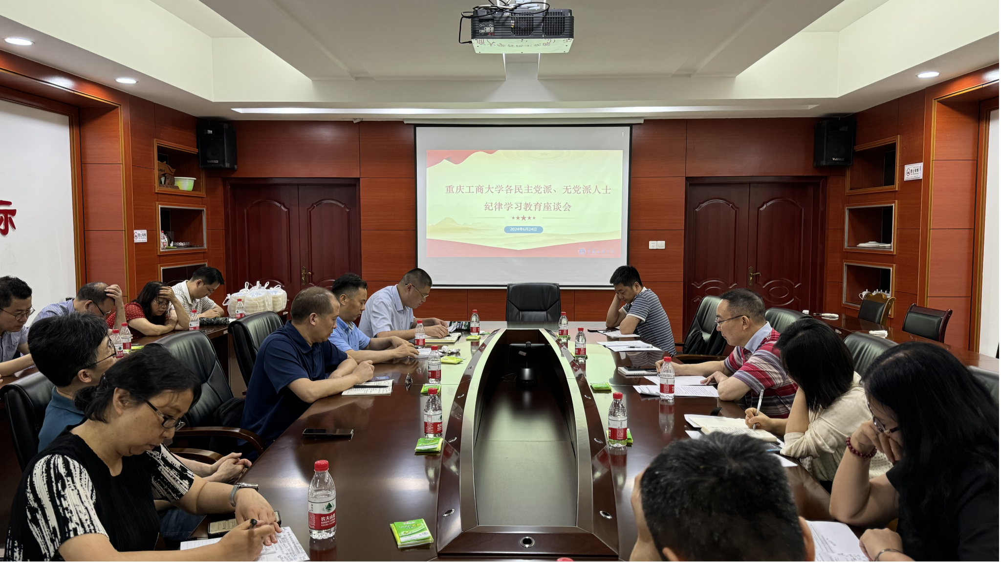 随后,大家在松溉镇政府会议室召开了bat365官网各民主党派、无党派人士纪律学习教育座谈会。会上,党委统战部综合科杨子萱领学了新时代统战工作的新理念新思想新战略,党委统战部综合科科长田静传达了中共中央办公厅印发《关于在全党开展党纪学习教育的通知》精神,党委常委、统战部部长华杰传达了市委统战部关于支持各民主党派、无党派人士开展纪律学习教育相关文件精神并布置学校相关工作。与会民主党派成员、无党派人士依次作了交流发言。