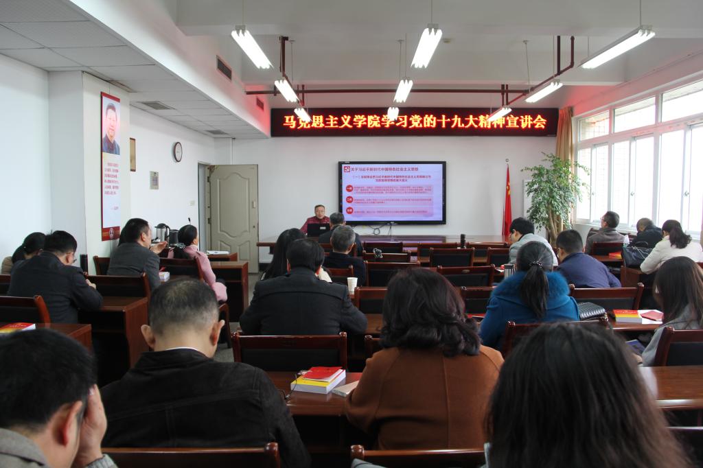 最后,陈书记再次强调,马克思主义学院全体教师要按照习总书记的要求,学懂、弄通、做实,原原本本学习十九大报告全文;同时,要在做实上下功夫,联系实际,在日常教学工作中将十九大精神尤其是习近平新时代中国特色社会主义思想融入到各门思想政治理论课中,要以新的形式和新的方法在课堂上打动学生,进一步提升教学效果,落实立德树人的根本任务。