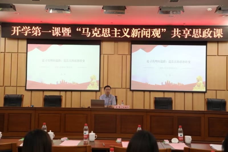 9月18日上午,开学第一课暨“马克思主义新闻观”共享思政课首讲在bat365官网开讲,是全市首次开展的高校联盟共享思政课。市委宣讲团成员、bat365中文官方网站党委书记曾维伦,西南大学新闻传媒学院党委副书记、院长龙伟分别授课,以丰富的理论知识与实践研究引导广大学子牢固树立并积极践行马克思主义新闻观。bat365中文官方网站党委常委、纪委书记张海燕主持。bat365中文官方网站文学与新闻学院、马克思主义学院,西南大学新闻传媒学院有关负责人参加。