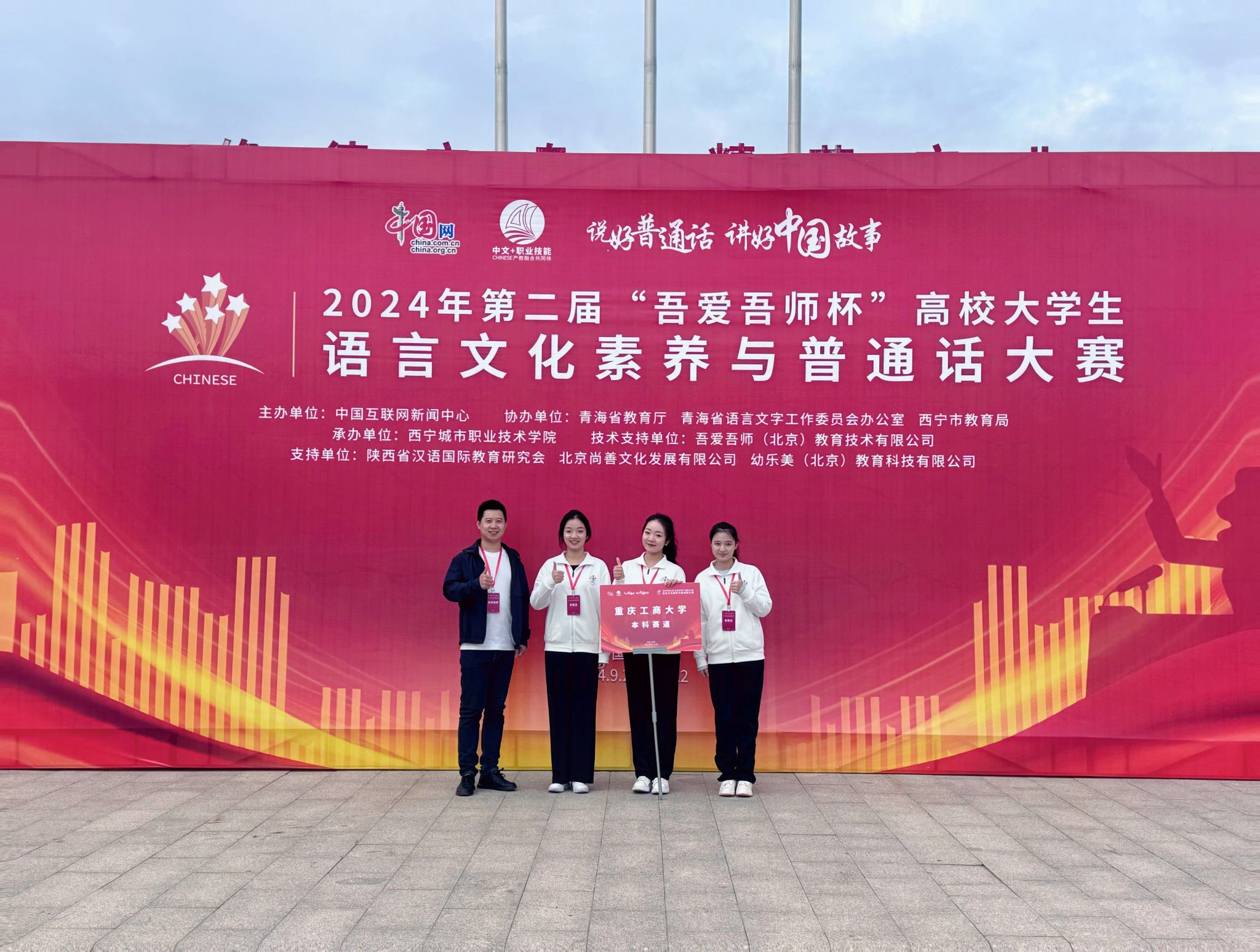 9月20日-22日,由中国互联网新闻中心主办,青海省教育厅、青海省语言文字工作委员会办公室、西宁市教育局协办的第二届“吾爱吾师杯”高校大学生语言文化素养与普通话大赛总决赛在西宁城市职业技术学院举行。bat365官网文学与新闻学院陈沄玥(2023级传播学)、魏心悦(2021级汉文)、陈毅(2023级新闻学)三位同学组队代表bat365中文官方网站参赛,获得(本科组)“团体一等奖”,李琦老师获“优秀指导教师”。