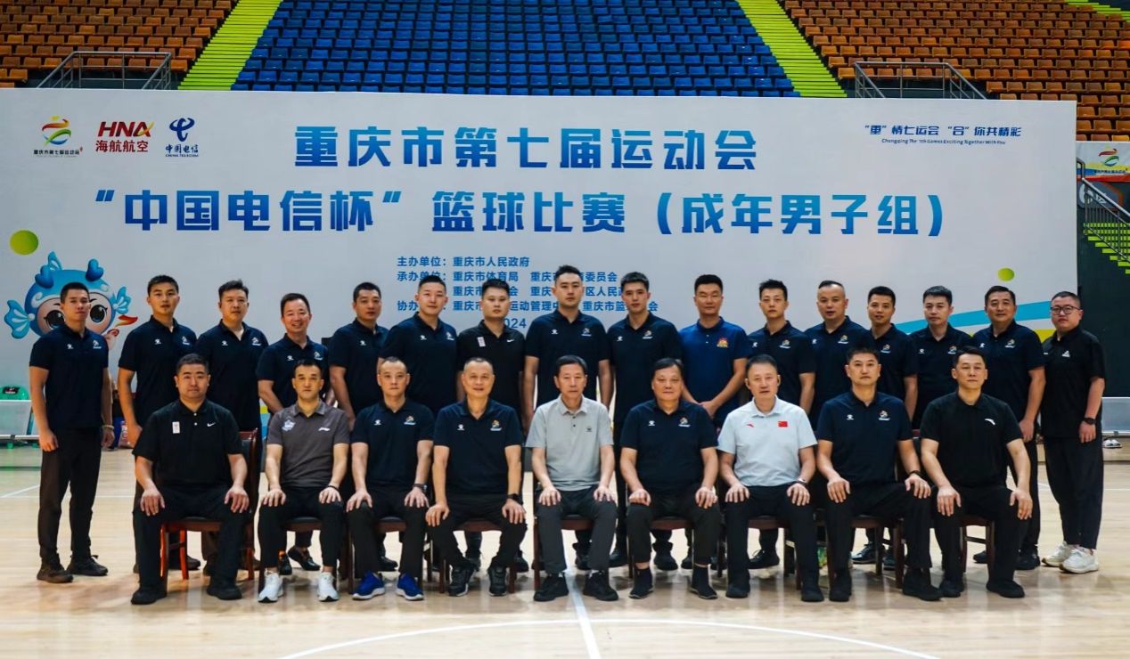 蒋愉老师(一排右二)担任篮球项目裁判长