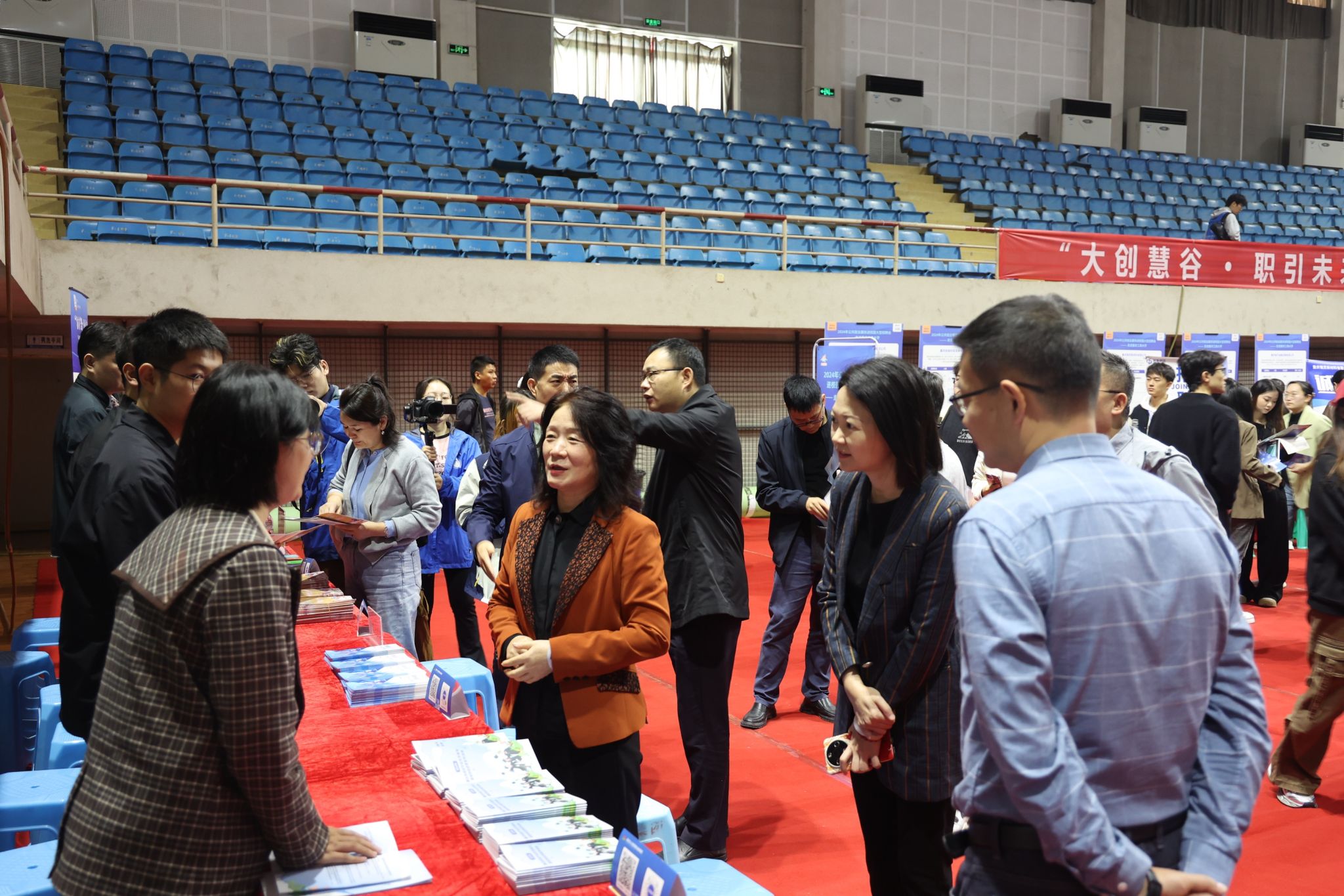 10月22日,“2024年公共就业服务进校园大型招聘会——走进bat365中文官方网站”活动在bat365官网体艺馆顺利举办。学校党委副书记宋豫,市人社局二级巡视员、市就业服务管理局党委书记、局长唐天元,市教委二级巡视员卢明伦,市人才交流服务中心副主任陈峰,南岸区就业和人才中心主任邹富丞等领导到现场指导。