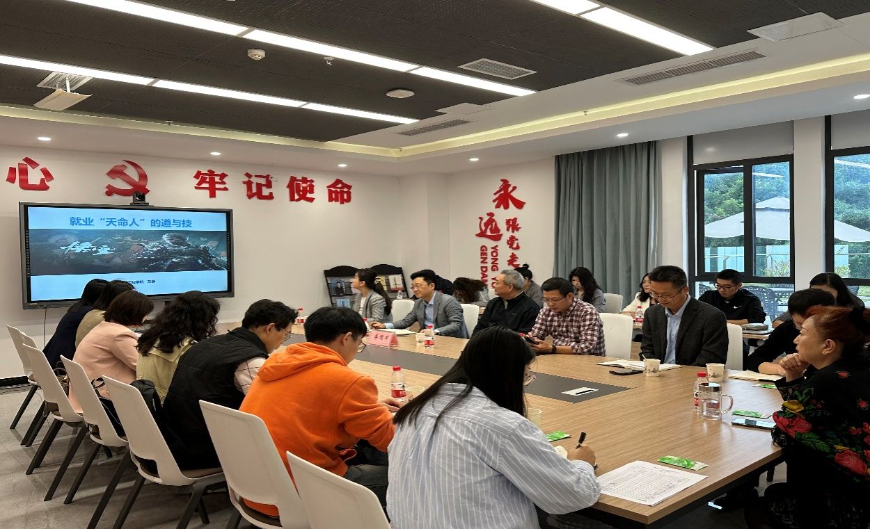 李国军作总结讲话。关于就业工作的“道”,他分享了就业推进会上曾维伦书记的三个观点:一是把招生和就业作为人才培养的检验标尺;二是树立大就业观,全校都要围绕“学生长本事”去改革和努力;三是强调党政主责,就业工作要合全校之力。在与学生的交流过程中,他发现学生焦虑的主要问题也是围绕就业问题,那么,关于就业工作的“技”,他指出,学工队伍作为人才培养的一环,在带班带生的过程中应注重激发学生求职就业的内生动力,以第二课堂为载体,训练强化学生的就业技能。辅导员老师应当把就业工作关口前移,从全学业周期上下功夫,精准服务学生,把就业工作作为日常思政和学生管理的工作主线来对待,不断促进学生的成长和发展。